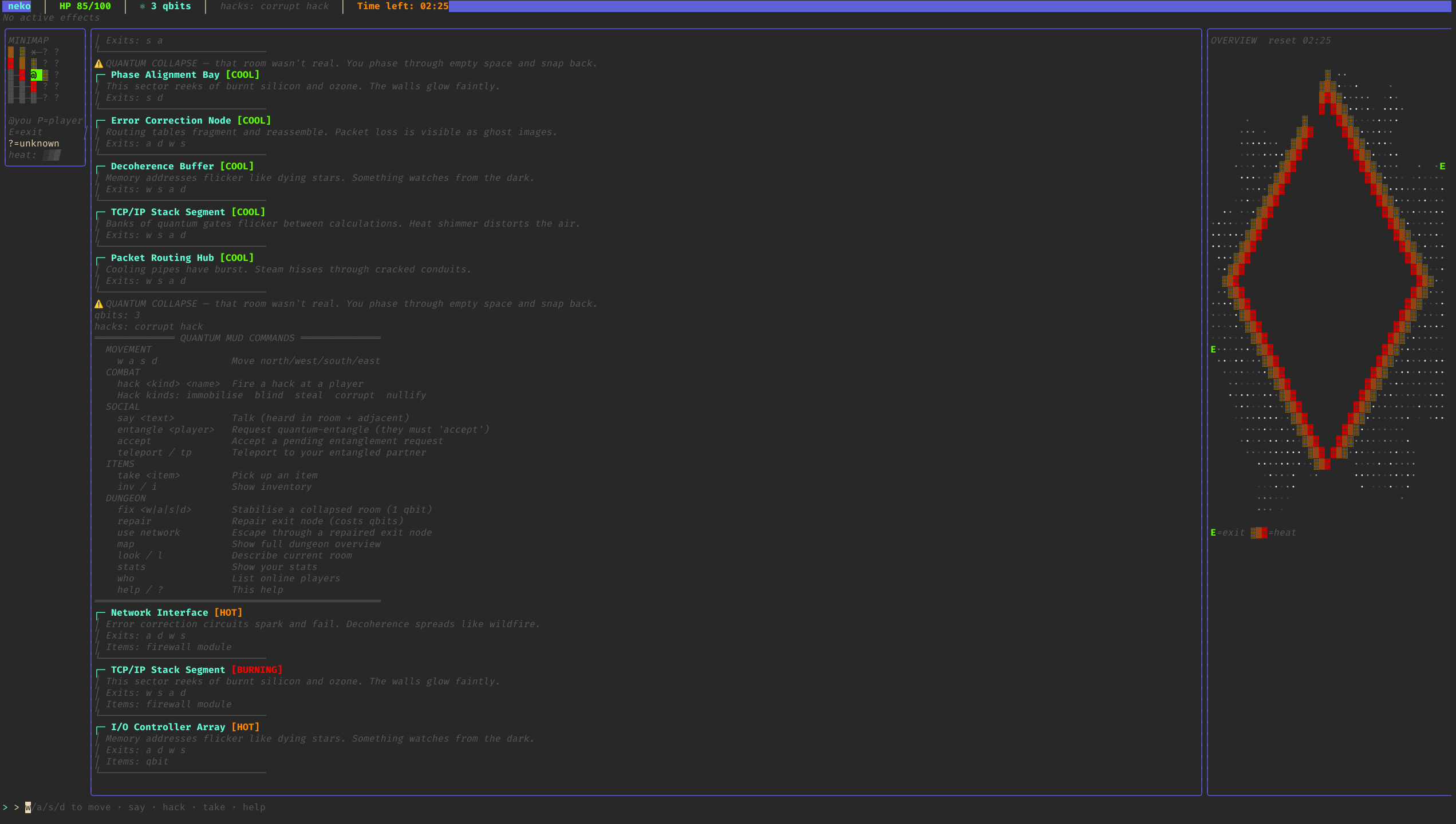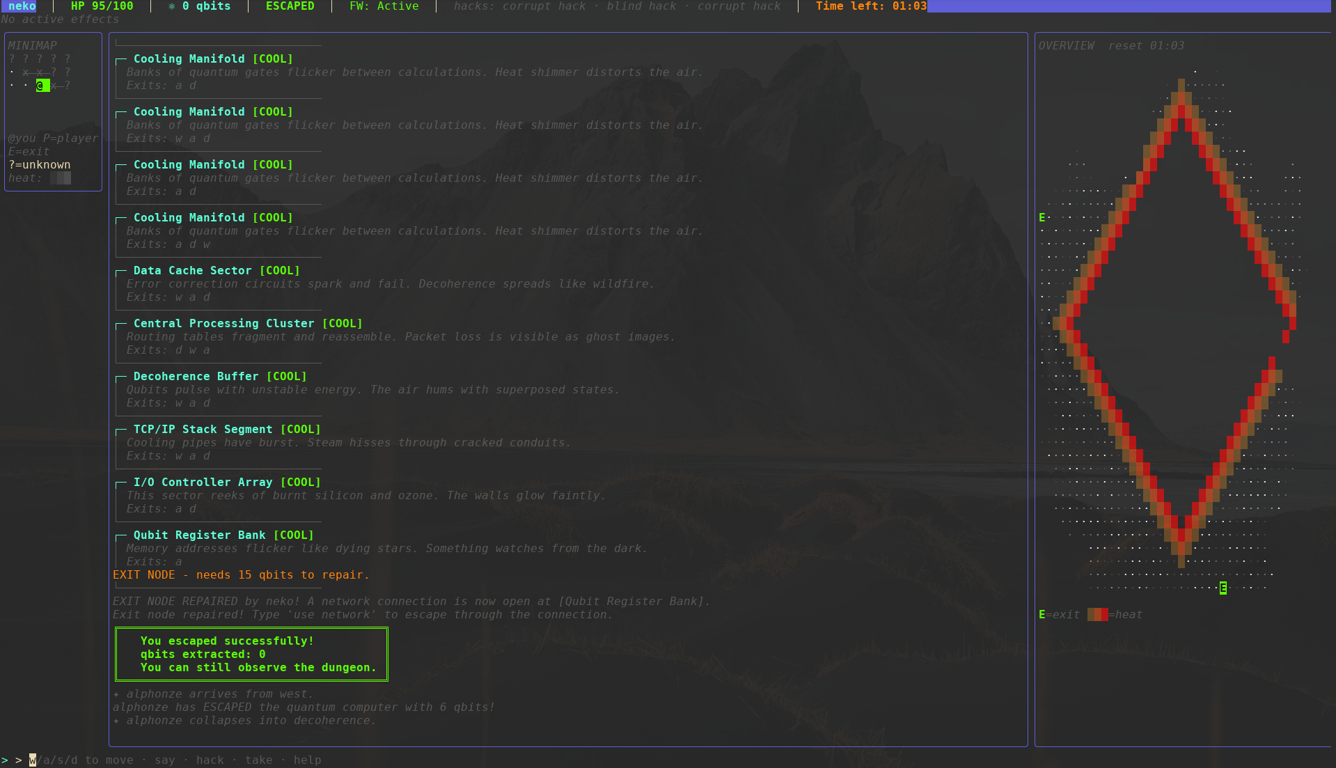 The map resets every 10 minutes, and if you escape successfully your qbits and hacks are saved for the next map.